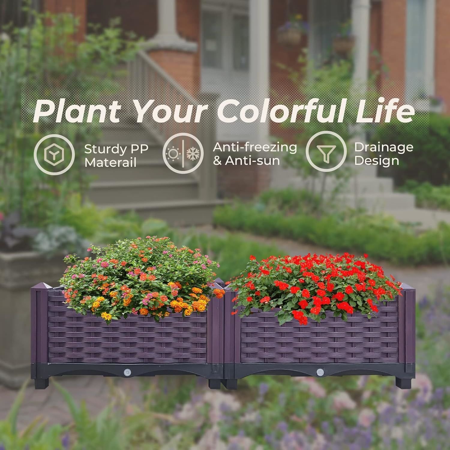 [High-Quality Materials] Our raised planters are made of reinforced PP material for high durability, lightweight and reliable construction to withstand changing seasons without warping.