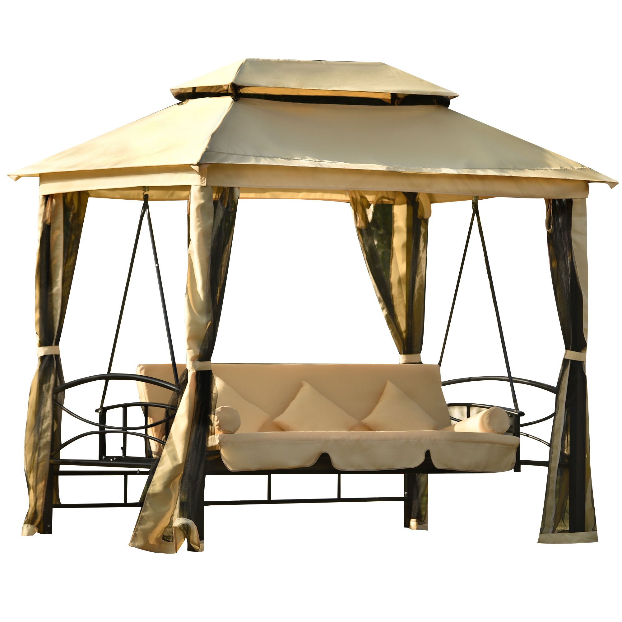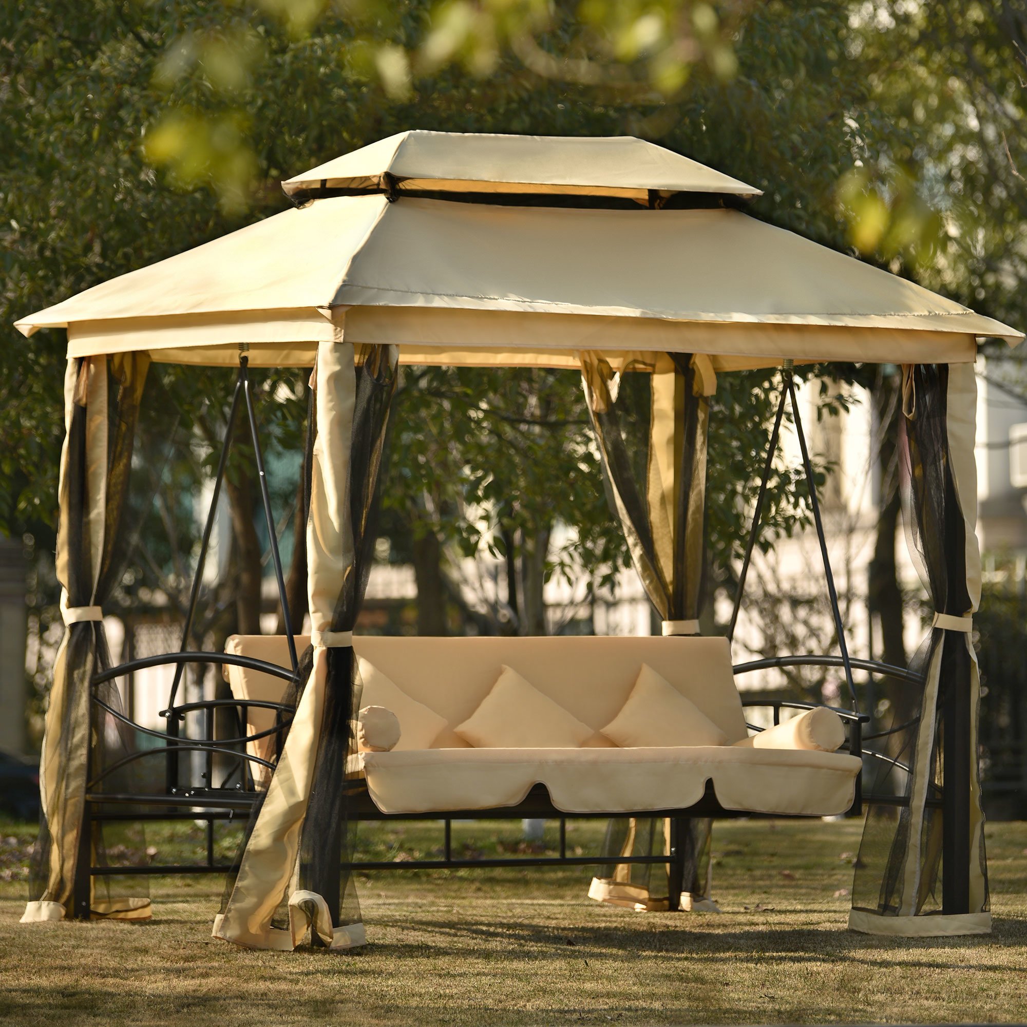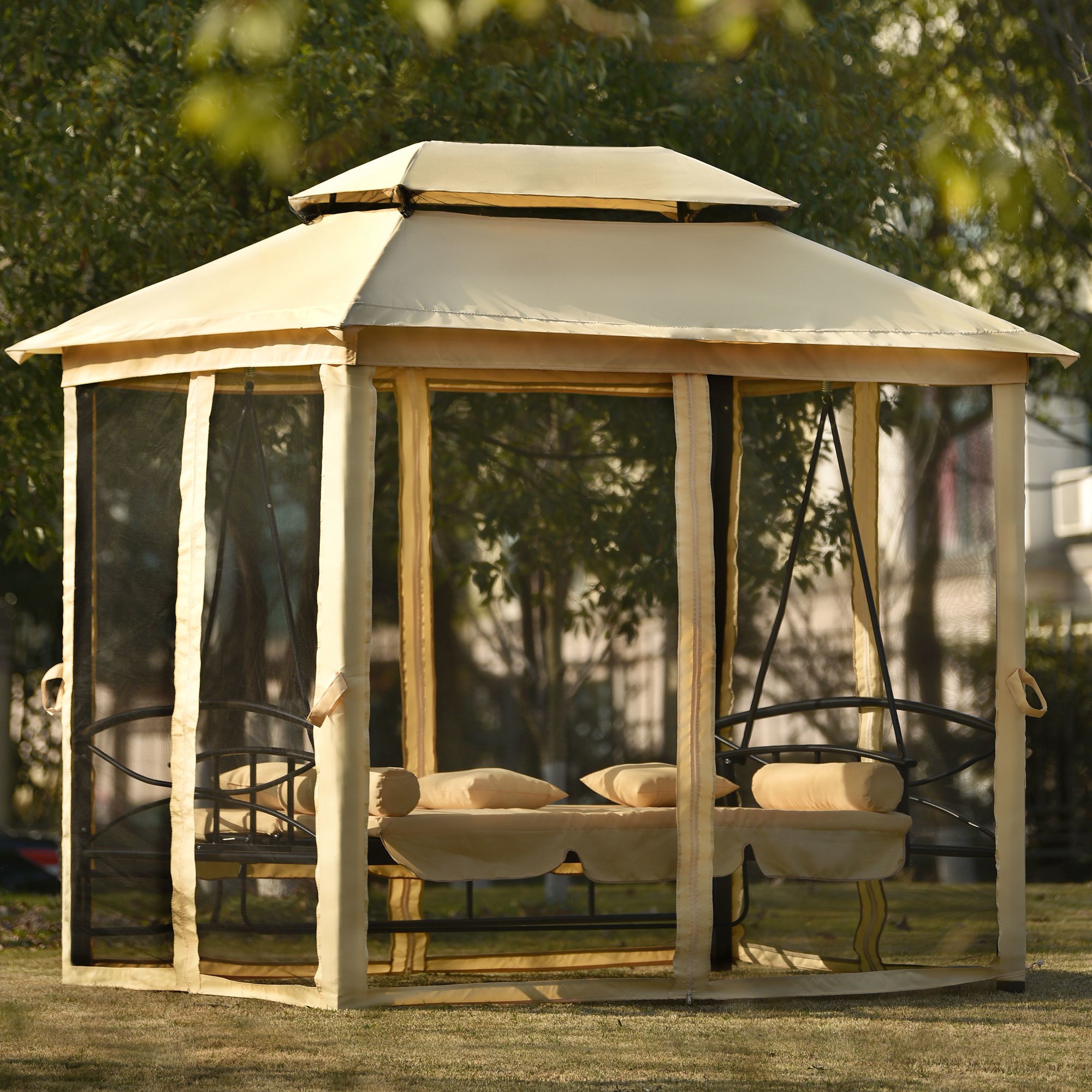 8.9 Ft. W x 5.9 Ft. D Outdoor Gazebo with Convertible Swing Bench; Double Roof Soft Canopy Garden Backyard Gazebo with Mosquito Netting Suitable for