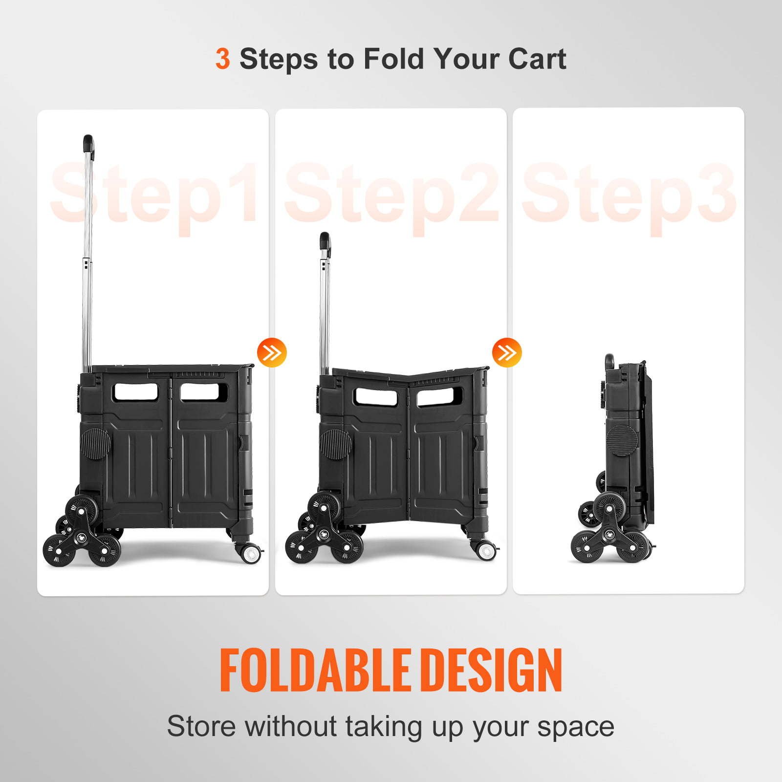 Foldable to Store: Are you worried about space? Well, don't be! This stair climber cart can be easily folded for compact storage, saving more space. It is convenient to carry and transport for all your needs; the trolley can be unfolded whenever used. It is easy to store in the trunk of your car, under a bed, in a closet, storage room wall, or garage.